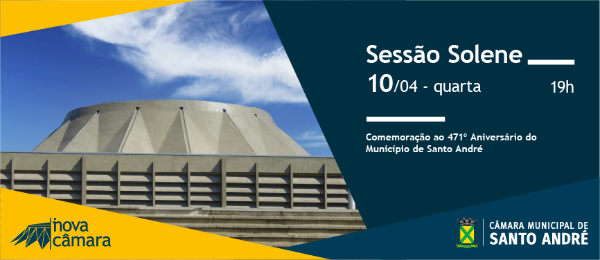 A Câmara realizará na próxima quarta-feira (10), a partir das 19h, a Sessão Solene em comemoração ao 471º Aniversário do Município de Santo André.