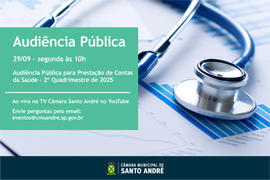 A Câmara receberá na segunda-feira, 29 de setembro, às 10h no Plenário, a Audiência Pública para prestação de contas da Saúde relativa ao 2° quadrimestre de 2025.