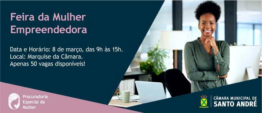 Você, mulher empreendedora, não pode perder essa oportunidade única de mostrar o seu talento e seus produtos ou serviços na Feira da Mulher Empreendedora, organizada pela Procuradoria da Mulher!
